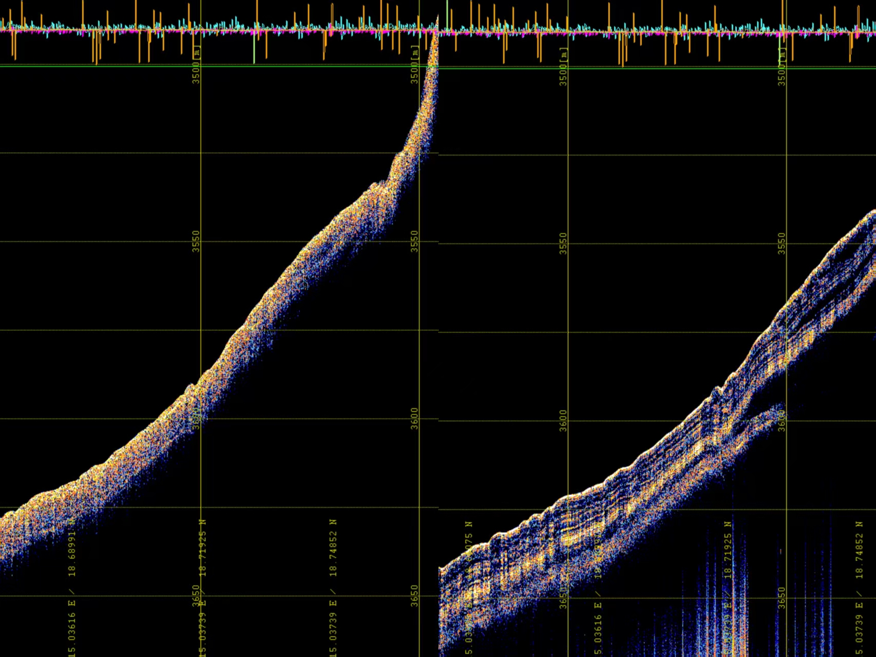 设备在60m-3600m全水深范围内表现卓越,清晰揭示海底地层结构,性能超越交付要求。