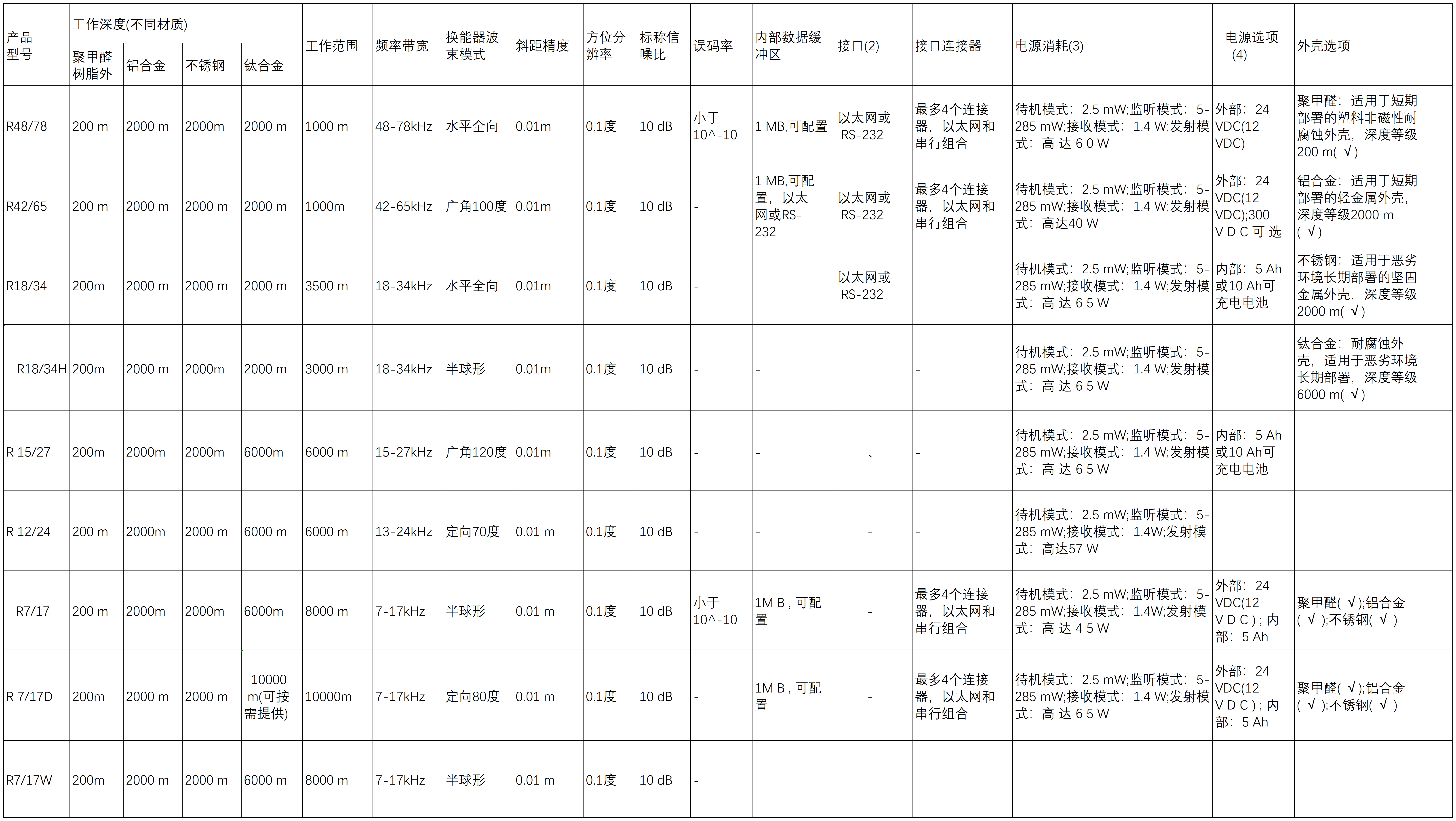 声学兼容性:全系列设备可相互通信,差异仅在于深度等级与波束模式